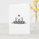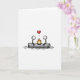 This greeting card shows two simple stick figures sitting close together on a light brown log, facing each other with small, curved smiles. Between them is a tiny campfire with yellow and orange flames that feels warm and cozy. Above the fire floats a plump red heart, connected to the flames by a trail of small dotted marks. The background is plain white, so the black outlines, the fire, and the heart stand out right away. There isn’t any text on the front, which makes the picture feel quiet and focused. It’s an easy way to say you care, whether it’s for a partner or someone you’re close to, because the scene looks calm and safe 🥰. The heart and shared fire make it feel like you’re celebrating time together, not just the holiday ❤️.