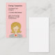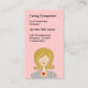 Simple cute caregiver business card template with image of a caregiver character you can use on our cards and simple layout you can customize online. Best buiness cards for a home health aide, LPN, or general caretaker.