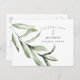 Celebration of Life Postcard. Details on the back. Loss of loved one with celebration. Share Memories. Customize. Horizontal. Foliage. White background. Single stem.