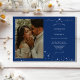 Invite your guests to a night of romance and starlight with this Simple Celestial Elegant Wedding Photo Horizontal Invitation from the Celestial Elegant Wedding Collection. Featuring a deep navy blue background adorned with twinkling stars and refined typography, this modern celestial design is perfect for couples who love a minimalist yet luxurious aesthetic. Easily personalize with your names, wedding date, and venue details for a fully customized touch. Ideal for celestial weddings, winter celebrations, or elegant evening receptions. Pair it with matching RSVP cards, programs, menus, and signage for a cohesive wedding suite.