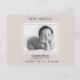 Simple Champagne Pink Birth Announcement. Place for message on back. Customize everything. Black and White filter applied to photo.