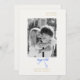 Chic and elegant. This gorgeous save the date card features a lovely blue watercolor ribbon bow, contemporary imitation gold font against a off white background and couple photo. Optional text at the back with repeat ribbon detail. Memorable and unique, this card excudes a sense of elegance, joy and charm.