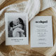 Plain white envelopes are included with paper invitations and will come to fit the invitation size you select. If you don’t need the envelopes, you may choose to not receive them by selecting the dropdown below "Envelopes" and choosing "None." If you’d like to have a design on your envelopes, you can browse all of these available envelopes to find the design that complements your Simple Chic Elegant Elopement Reception Photo Invitation.