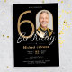 Simple Chic Gold Black Custom Photo 60th Birthday Invitation