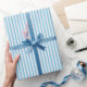 Simple Chic Linen Look Striped Pattern Light Blue Wrapping Paper