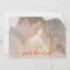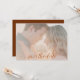A soft blush overlay makes this simple, modern and effortlessly chic wedding photo save the date a nice choice for a fall wedding or for any couple with blush, soft pink, monochromatic beige or dusty pink color schemes. A rust brown background on the back provides a nice contrast for the design.