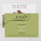 This customizable card features a sophisticated sage green, black, and white design with modern script on the front, setting the tone for your upcoming celebration. On the back, showcase your love with a lovely photo of the bride and groom-to-be. Personalize the text and photo to create a unique and adorable save the date card that perfectly reflects your love story. With its elegant design and customizable options, this card is sure to impress your guests and set the stage for your wedding day. Order now and start counting down the days until your unforgettable moment!