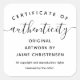 Chic minimalist certificate of authenticity sticker in black and white to which you can add your name or business name.