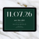 A simple modern save the date card. Personalize this chic emerald green and white design to have your wedding date, names and details.