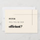 Will you be our officiant proposal card. Minimalist yet striking: adopt this slightly retro typographic design for your wedding stationery, with an elegant cream color. Fully customizable text, colors and backgrounds.