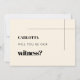 Will you be our witness proposal card. Minimalist yet striking: adopt this slightly retro typographic design for your wedding stationery, with an elegant cream color. Fully customizable text, colors and backgrounds.