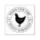 Brand your eggs with this clean and modern stamp. The simple design features a chicken illustration within a circular border. Customize it with your farm or business name and establishment year for a professional touch. High-quality self-inking stamp ensures clear, consistent imprints.