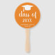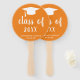 Minimalist graduation hand fans featuring a simple and classic design with a grad cap and "class of year" in a thick script handwriting along with the graduate's name in white over an orange background. The background color may be changed to any color you wish. A traditional style with a modern flair for a girl graduate.