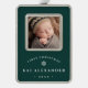 A beautiful classic design to commemorate baby's first Christmas, with a favorite photo on an inset panel. Personalize with baby's name in classic serif lettering, along with the year, on a forest green background with a single snowflake accent.