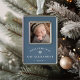 A beautiful classic design to commemorate baby's first Christmas, with a favorite photo on an inset panel. Personalize with baby's name in classic serif lettering, along with the year, on a dusty blue background with a single snowflake accent.