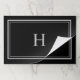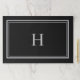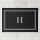 A simple elegant tearaway paper placemat with classic styling, this design features a double-lined border in a tasteful shade of neutral gray over a stylish black background. The border is perfectly symmetrical, framing the entire placemat with two parallel lines that run along its perimeter. A text template is included in the center of the design to personalize with your monogram initial. These placements are great to have on hand for entertaining and have the ease of being disposable for your convenience.