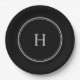 Simple and elegant with classic styling, this design features a double-lined border in a tasteful shade of neutral gray over a stylish black background. The border is perfectly symmetrical, framing the monogram initial in the center of the design. Personalize the text template with your monogram initial. These plates are great to have on hand for entertaining and have the ease of being disposable for your convenience. Available in 2 sizes: shown here in the 9-inch diameter size, they are also available in 7-inch diameter size.