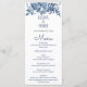 Simple Classic Blue, White Floral Wedding Menu
