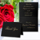 Simple classic chic script personalized names, customized message, elegant black and gold folded thank you card. Click Personalize this