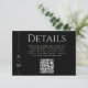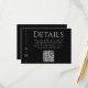Simple, elegant and tasteful, this classic black wedding Details enclosure card features a thin line border along the left edge with the bride and groom's monogram initial. A timeless elegant serif font conveys your information beautifully. The popular black background with off-white text adds to the clean simplicity of this design. A QR code is included in the template to personalize with your wedding website URL. Guests can scan the QR code or visit the URL shown to view information surrounding your wedding as well as RSVP online quickly and easily.