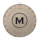 Modern dart board with simple black and beige monogram medallion with classic block typography initial in black. Personalize with monogram initial; use customize menu to change background color or typography.