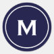 Simple Classic Monogram Navy Blue White Round Sticker