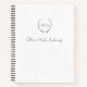 Classic black and white notebook / journal featuring a simple layout with your monogram inside of a wreath / crest along with your name in an elegant script / calligraphy. A feminine and girly design that is great for personal use or a small business owner.