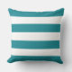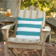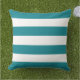 Simply stylish outdoor pillow design features a pattern of wide white horizontal stripes with an teal blue background. Classic design coordinates with any style of decor. Background color can be modified.