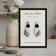 Minimalist earring jewelry display card designed for presenting handmade earrings, studs, hoops, and dangle jewelry. This stylish jewelry display card features elegant typography set against a chic black border. Perfect for jewelry designers, Etsy sellers, craft show vendors, and boutique owners who want professional packaging for their handmade jewelry. Customize the template with your business name, contact information, website, and social media details for both the front and back of the card. Ideal for earring packaging, jewelry display, craft show presentation, boutique packaging, and small business branding.