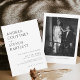 Plain white envelopes are included with paper invitations and will come to fit the invitation size you select. If you don’t need the envelopes, you may choose to not receive them by selecting the dropdown below "Envelopes" and choosing "None." If you’d like to have a design on your envelopes, you can browse all of these available envelopes to find the design that complements your Simple Classy Photo Black And White Wedding Invitation.