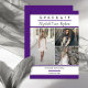 Simple, classy and elegant three photo purple, white and gray with black text graduation announcement design featuring script "signature" text for your grad's name.