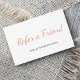 This design provides a modern and professional look that easily stands out and can be used to promote referral programs. The minimalistic design ensures that the referral message is the main focus of the card, while the pink and gray colors make it aesthetically pleasing.