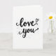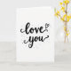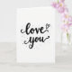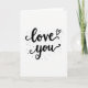 This greeting card features the simple words “love you” in black lettering on a bright white background. “Love” sits above “you,” with smooth, flowing letters that connect like a quick note written from the heart. The letters have gentle curves and small swirls, and the long tail on the “y” adds a soft, romantic feel. A tiny outline heart is tucked just above the “e” in “love,” like a little reminder of care. Around the words, small black dots of different sizes are scattered like light confetti, giving the card a relaxed, happy look. With only black and white, it keeps your focus on what you want to say, making it feel honest and close ❤️. It’s meaningful because it says a lot without needing extra details, which can feel especially true on Valentine’s Day 🥰. Hope it helps you share your Valentine’s Day feelings with someone you care about.