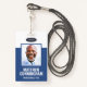 A modern and simple badge that does not distract from the important details. Easy to read from afar. Add a custom logo and company details. Add the employee's name, photo, and professional title. The bar of color can be modified to match the company's official colors. At the back, add more information such as return address and the employee's ID number. Perfect for oval shaped logos.
