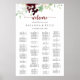 This simple colorful classic alphabetical seating chart is perfect for a rustic wedding. The design features burgundy, pink, blush and white watercolor flowers with green leaves and red berries neatly bunched into attractive bouquets.