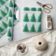 Handpainted, watercolor conifer Christmas-trees-in-waiting march across a frosty background.