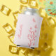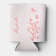 Unique simple can cooler featuring romantic and elegant coral pink flowers and butterflies on light pink background