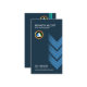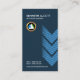 A simple card using an elegant dark blue background with three sets of arrowheads containing an underlying faded blue lined pattern. At the top lies your prestigious name and job title with the elegant faux gold logo directly underneath. All your details rest near the card's floor.