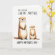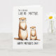 This card features a simple white background with two upright, animal-like river dwellers centered close together, their bodies angled as if sharing a quiet moment ❤️. The larger figure stands slightly behind and beside the smaller one, with a tender, protective posture that reads like close family or dear friendship. Both have soft caramel and creamy ivory fur with gentle shading, giving them a plush look without heavy detail. Their faces are sweet and open, with round bright eyes, tiny black noses, fine whiskers, and lightly rosy cheeks that suggest affection between them. With no scenery around them, the empty space feels calm and intimate, drawing attention to their closeness. A short line of text sits above the pair in a dark, flowing style, while a second message appears below in a matching color, neatly framing the illustration 🌼. The two figures are the only artwork on the front, standing on the blank white ground with no extra objects or borders.