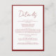 Simple Crimson Red Border Script Wedding Details Enclosure Card