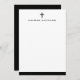 Flat, blank stationery notecards featuring a simple black or any color cross with the name below in a masculine font. At the bottom is a black (or custom color) border. All colors are customizable.