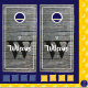 The look of weathered barn wood creates a vintage rustic atmosphere for this distinctive cornhole set. Invite the family, compete with the pals. The background that mimics the look of an old barn is edged with a narrow rectangle, and the bean bag hole is framed with white. Your monogram is in a bold black font, topped with your name (pluralized) in a white script font. "THE" is a small note above, while the establishment date and city, state are printed on two lines below. These are great housewarming (especially at the lake or beach house) and anniversary gifts. We've brightened the set with royal blue and yellow bean bags, but be sure to select your personal favs when you personalize this set to make it your own.