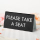 This is an elegant and simple please take a seat desk sign created to direct your patiens and /or customers to sit and wait to be called in your doctors office or medical office. Can be customized with your own text. This table sign comes with a white font on a black background.