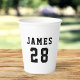 Simple varsity style paper cups featuring your name and number with fully editable colors. Font colors can be changed by clicking on customize, select the texts in the "Auto Warping, Front" and "Auto Warping, Back" layers and change its color . Background color can be changed by going to the "Auto Warping, Wrap" layer and changing the background color. They make the perfect paper cups for birthdays, graduation or celebrating your athlete's achievement.