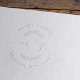 The embosser/plate arrived early! Designing it was easy, though the number of style choices was almost overwhelming - but nice to be able to find and design more than one that I liked. The embossing is powerful enough to make a clear imprint on a file folder (left image) but can also make a great imprint on ordinary paper (right). I was in the market in order to put a business seal on certificates. Now I've thought of a number of other ways this could be fun to use. I like it so much that I'm ordering a second design I made. It's requiring me to speak to the "print quality" but this isn't a printed item so I can't.