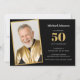 Simple Custom Photo Black Gold 50th Birthday Party Invitation