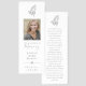 Our thoughts are with you at this very sad time and we want to make remembering your loved one a very easy process. That's why we have designed these memorial bookmarks to make them quick to personalize with your own custom photo and wording. The simple design allows you to frame your photo and display your wording without overshadowing any elements. These cards can be given to family and friends as a beautiful keepsake. Please message us if you would like any elements of the design changed and we will be here to help.