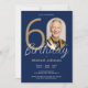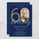 Simple Custom Photo Navy Blue 60th Birthday Invitation
