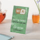 Enhance your business or event with our customizable Green Stone Color WiFi Network Password Pedestal Sign. This 4" x 6" sign, featuring a 2" pedestal base, is perfect for counters, desks, and display tables. Made from durable 1/16" white plastic polystyrene, it boasts a high-quality, full-color, digital print that ensures your personalized message stands out. Available in four sizes, this customizable sign is an elegant and practical addition to any space.