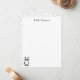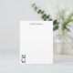 A cute, minimal personalized note card design with a little black and white panda wearing glasses in the bottom left, at the top in modern typography you can customize with your name. The back of the note card has a black and white polka dot pattern.